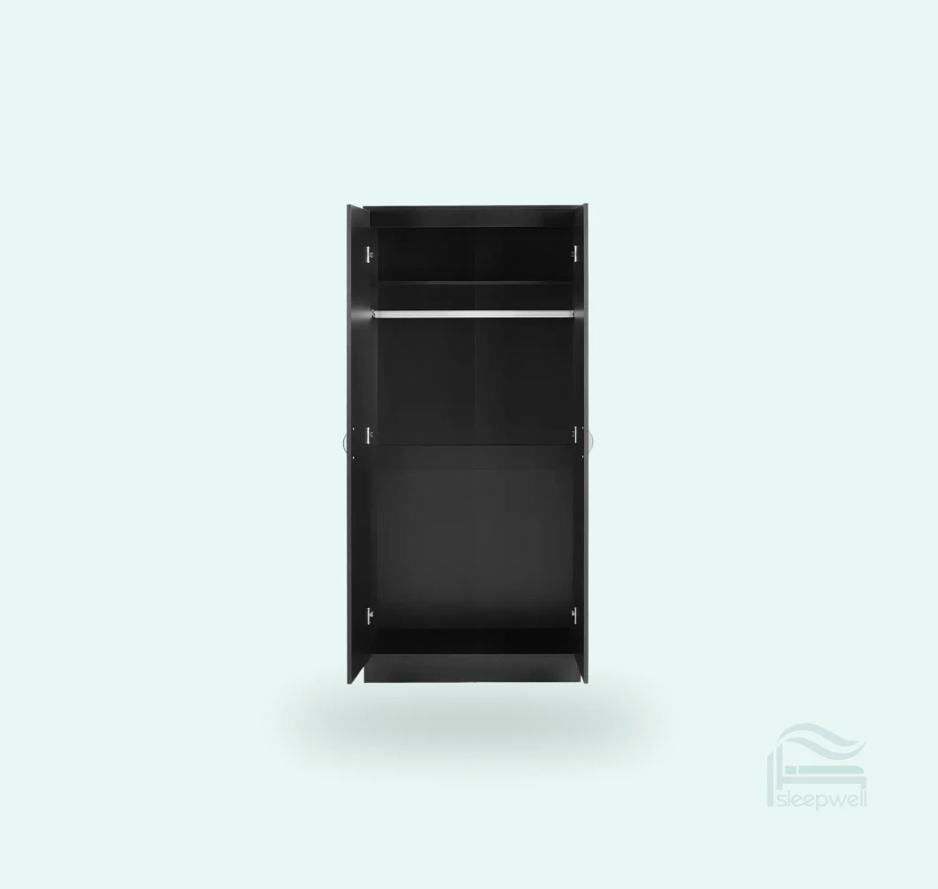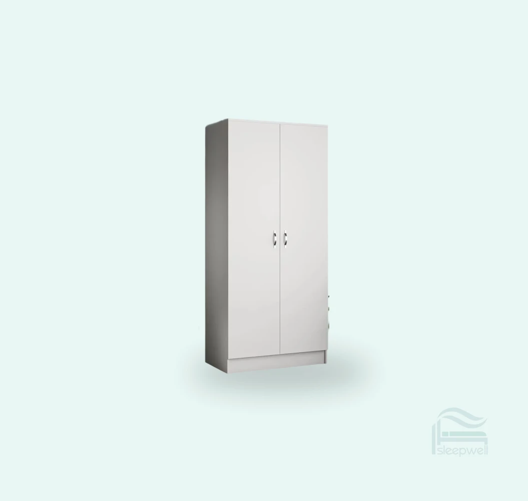 - This 2 door wardrobe is crafted from high-quality chipboard with a smooth matte finish for a clean and contemporary look.