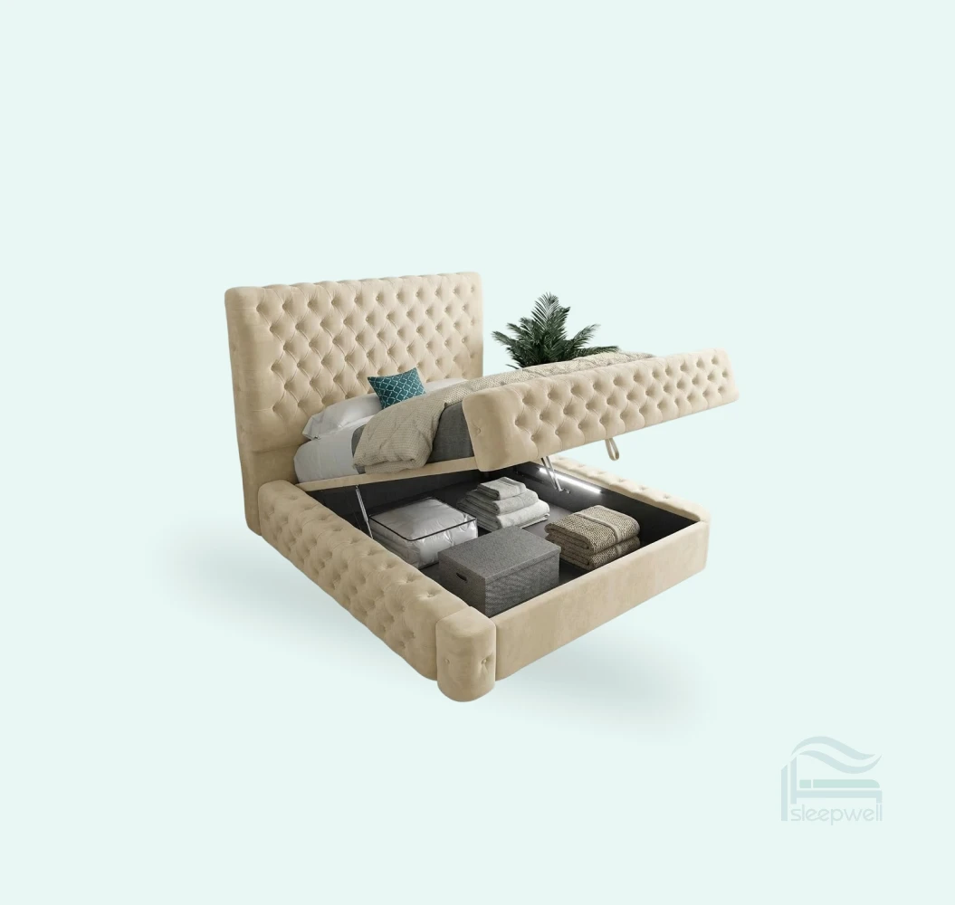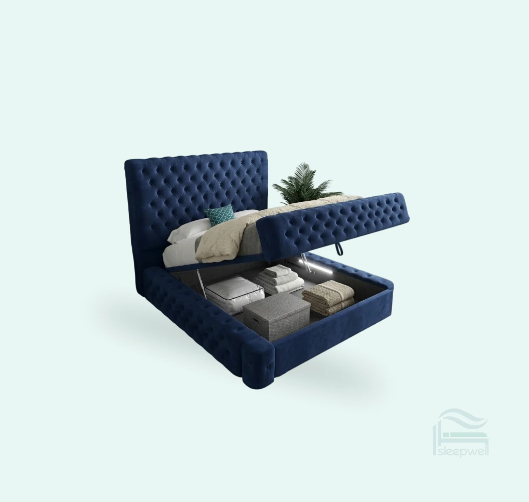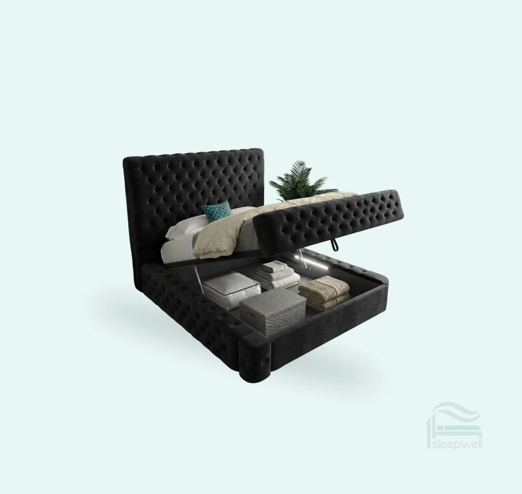 Experience the perfect blend of high-end aesthetics and functional design. The Ambassador Ottoman Storage Bed from Sleepwell Furniture is crafted to be the centerpiece of your bedroom while providing essential, hidden storage.