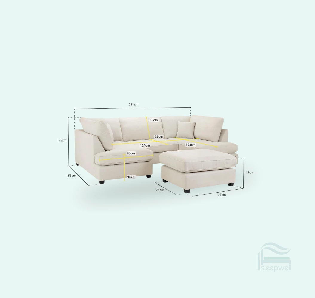 At Sleepwell Furniture, we believe relaxation should be immersive. The U-shape configuration provides a “nest” effect, perfect for stretching out and escaping the stresses of the day.