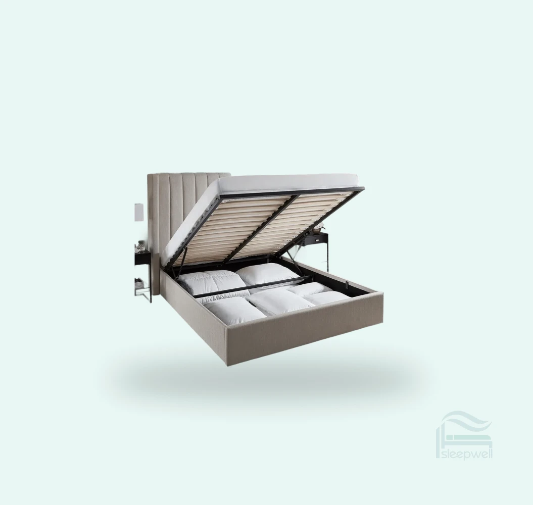 Divan Ottoman Bed with Lift-Up Storage: The Divan Ottoman Bed from Sleep Well Furniture features a smart lift-up base, providing easy access to spacious under-bed storage for bedding, clothes, and more.