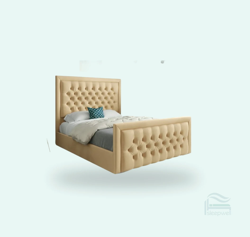 Elegant Chesterfield Design: A refined Chesterfield-inspired style that adds timeless sophistication to any bedroom by Sleep Well Furniture.
