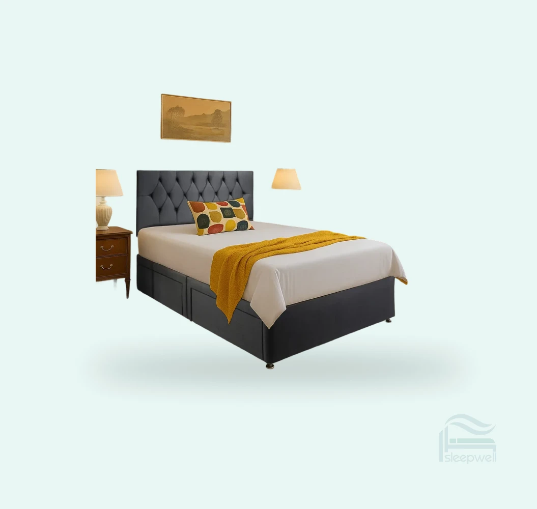 Sleepwell Furniture proudly presents this Classic King Size Divan Bed Base, designed for comfort, style, and affordability. This king size bed is the perfect choice for anyone looking to create a modern and elegant bedroom without overspending. Available with a choice of mattress, headboard, and optional storage, this all-in-one divan bed set offers outstanding value for money across the UK.